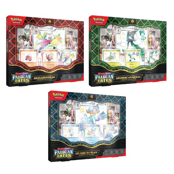 📦 Contenido: Caja Premium Collection que incluye sobres de expansión de Destinos de Paldea y cartas promocionales exclusivas.